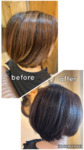 こんにちは、飯田です! レブリン酸入り白髪ぼかしカラーのお客様です(^^)/ 以前はヘナで染めていたお客様ですが、白髪ぼかしカラーに移行し 繰り返し染めていくことで赤味がなくきれいなグレージュに仕上がるようになりした。 一度で...